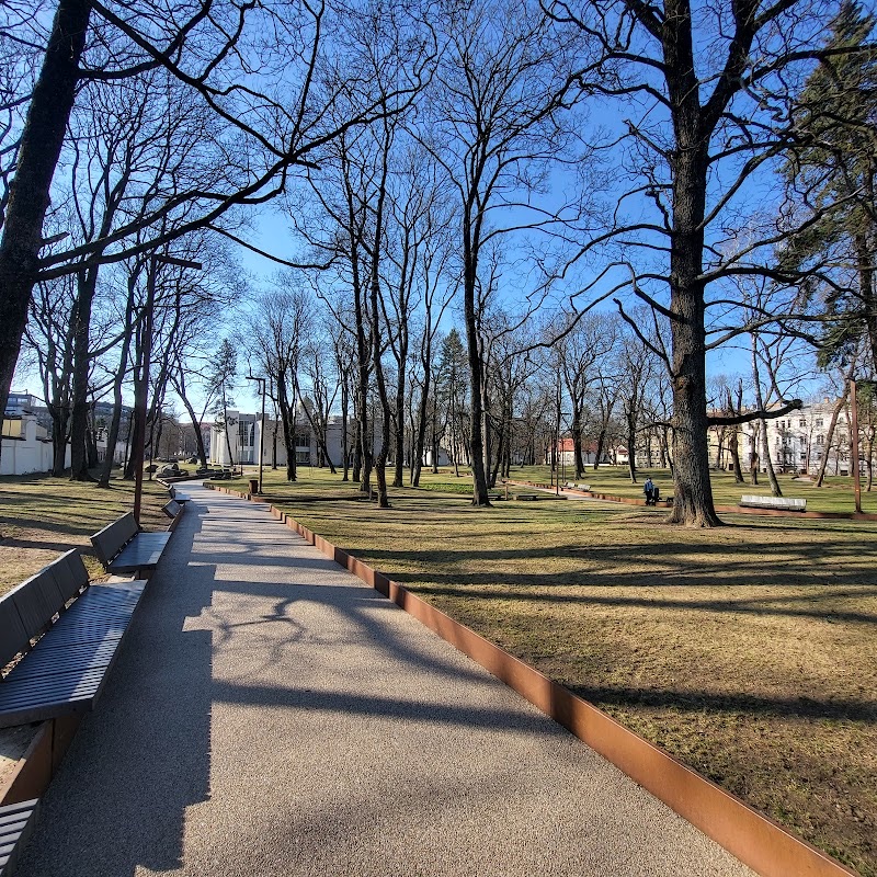 Hillside park on V. Mykolaitis-Putinas street, with beautiful panoramic views and walking paths.