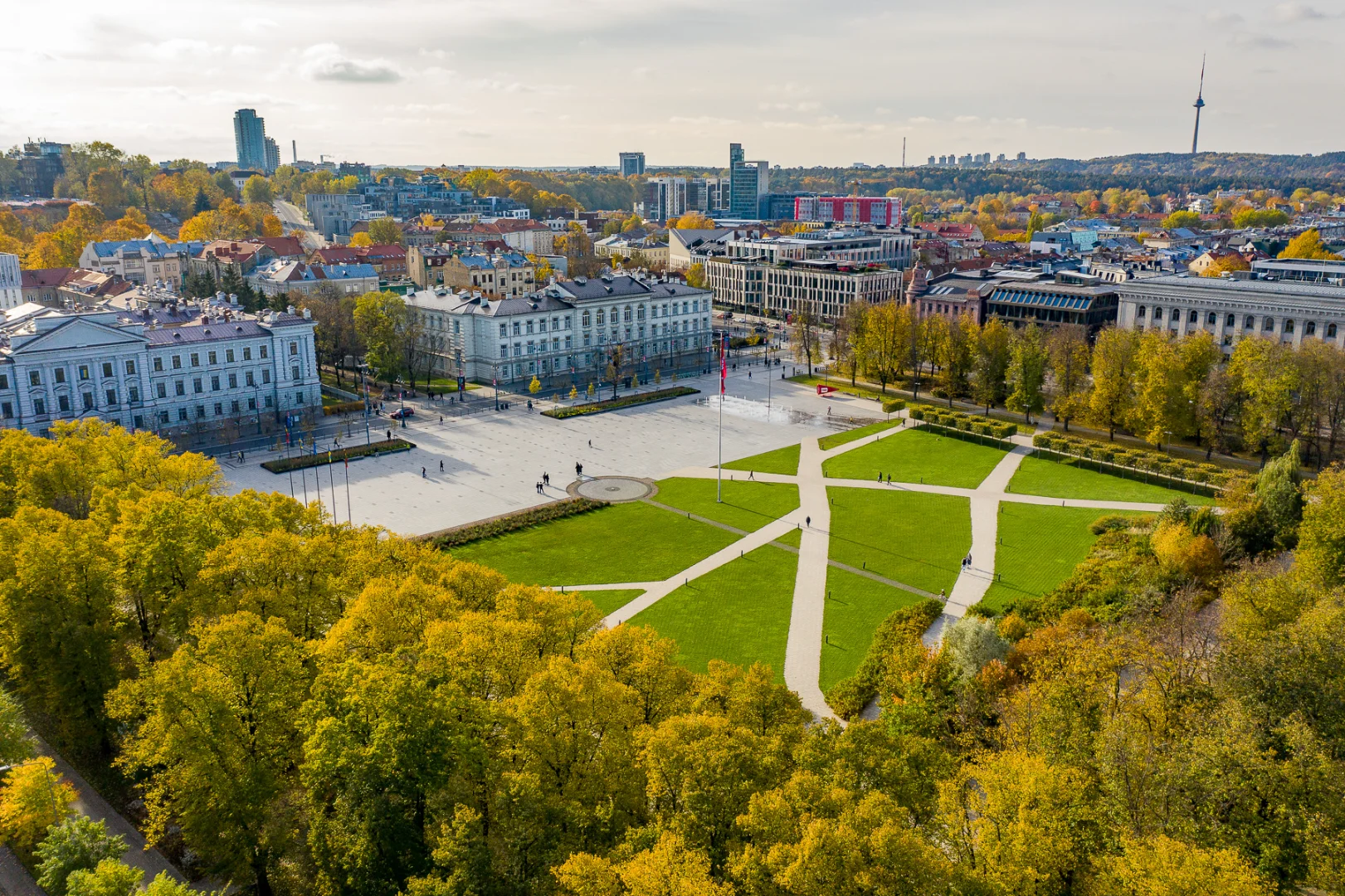 Lukiškės Square is the most important and largest public square in Vilnius, now renovated into a modern urban space. It hosts major state events, fairs and city festivals. Below the square there is the Lukiškės Square Centre with an exhibition on the history of the square from tsarist times to the Soviet era. The square is known as the true centre of Vilnius life, where people gather to rest, exercise, and attend events.